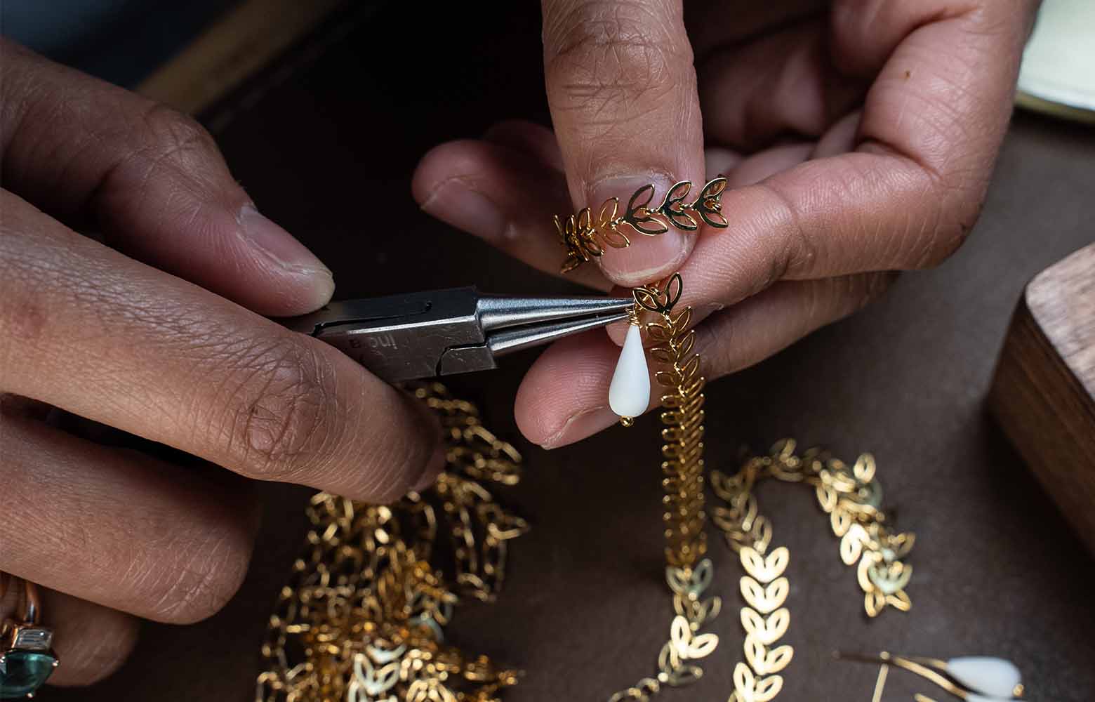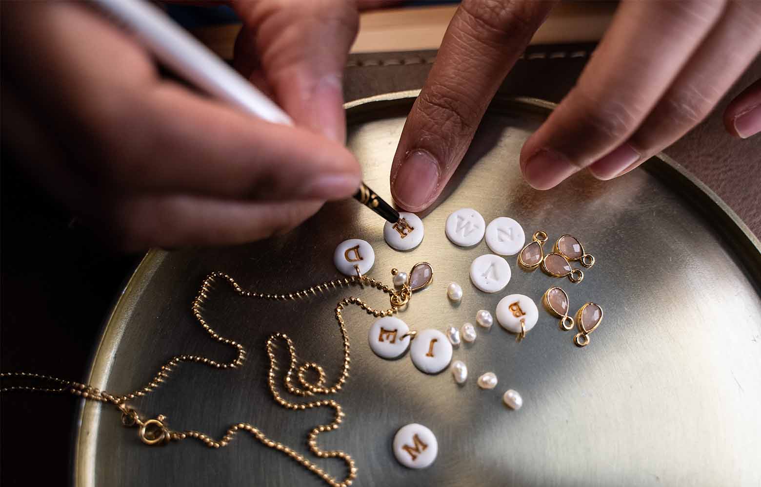 Les différents apprêts dorés à l’or fin 24 carats que nous utilisons permettent de capter la lumière et ainsi de garantir un aspect élégant au bijou.