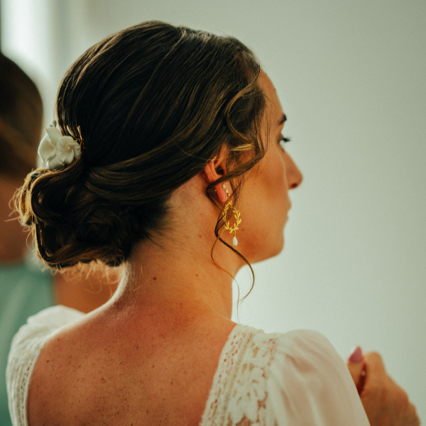 “J’avais tellement hâte de les porter ! La coiffeuse a aimé votre travail, alors j’ai bien évidemment donné votre nom ! Merci à vous pour ces sublimes boucles d’oreilles”
