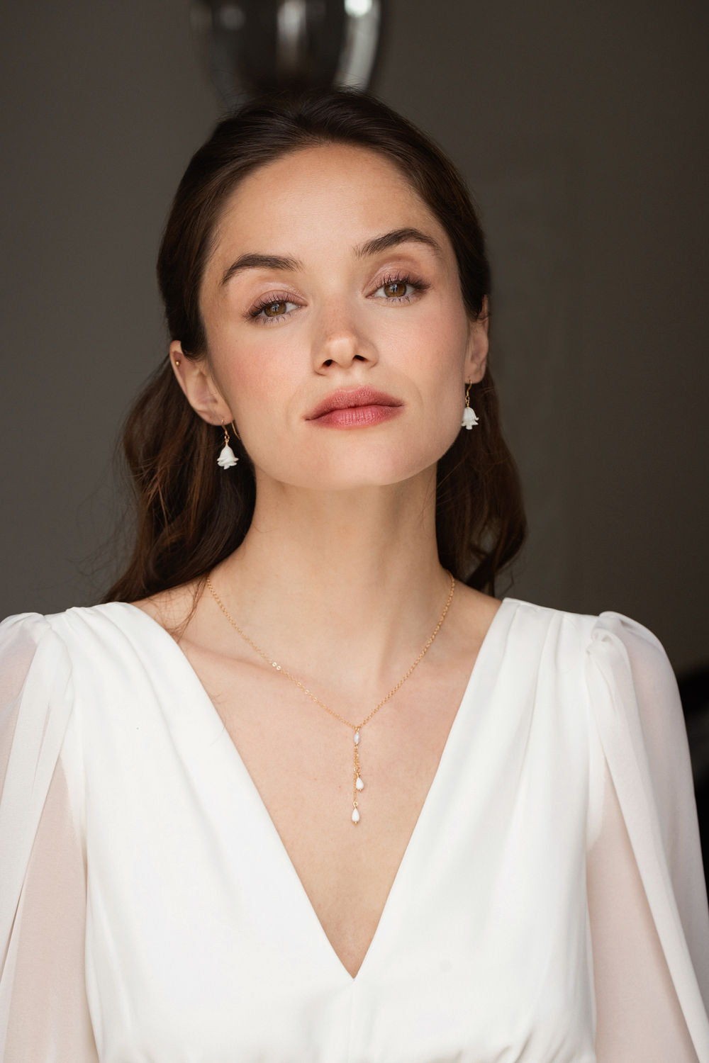 Ses pendants viennent sublimer le décolleté en toute délicatesse.