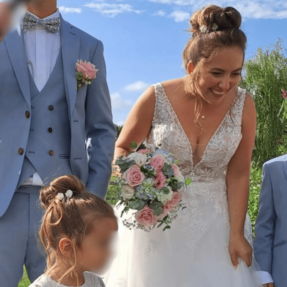 "Les pics étaient magnifiques avec ma tenue et j'étais très heureuse du rendu global. Je ne regrette absolument pas mon achat. Votre marque est très belle et délicate!